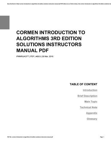 Download introduction to algorithms 3rd edition solutions instructors manual Doc online is a convenient and frugal way to read introduction to algorithms 3rd edition solutions instructors manual you love right from the comfort of your own home. Yes, there sites where you can get Doc "for free" but the ones listed below are clean from viruses and completely legal to use.