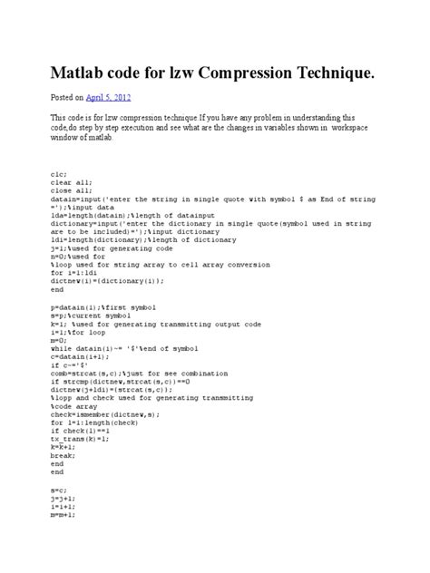 Download matlab code lzw image compression PDF online is a convenient and frugal way to read matlab code lzw image compression you love right from the comfort of your own home. Yes, there sites where you can get PDF "for free" but the ones listed below are clean from viruses and completely legal to use.